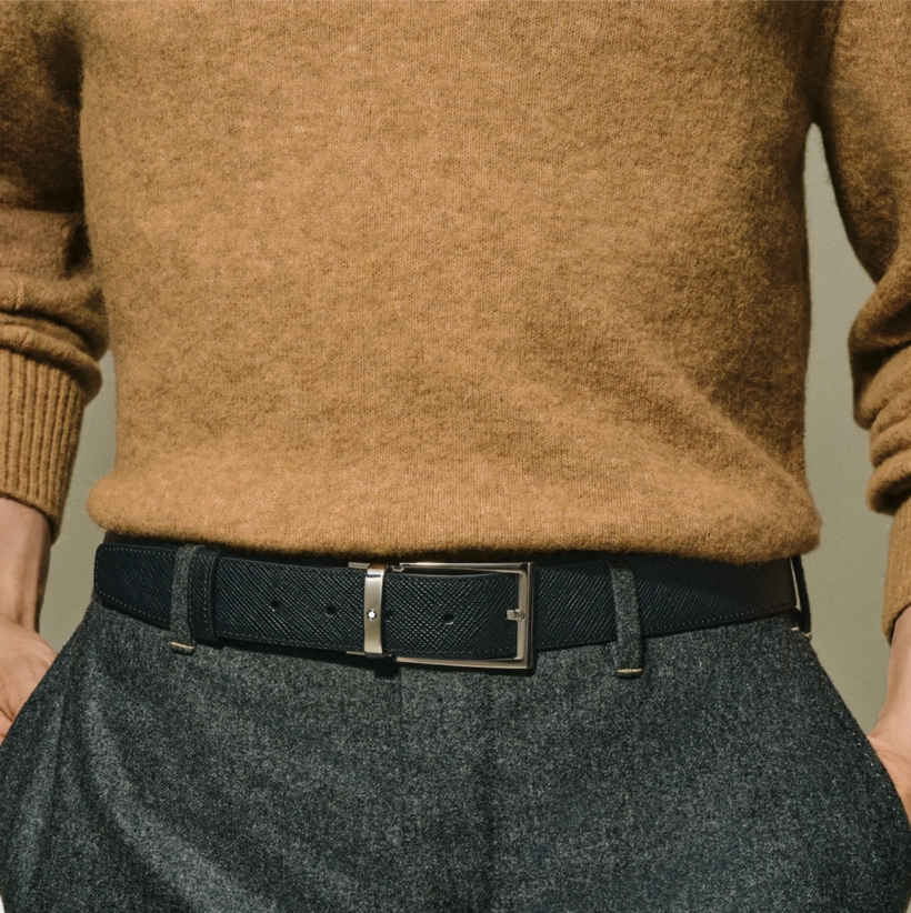 Двухсторонний мужской ремень Montblanc: кожа черного и коричневого цвета 35 мм от магазина премиальных ручек Premium Pens в Череповце.